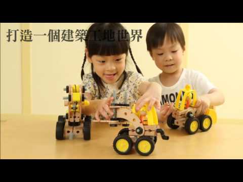 積木工程車利用木製積木與工程配件,自由造型出工程車,孩子可以在轉、插、拼、組的操作遊戲中,探索建築工程車的造型,促進小肌肉的發展。積木工程車有三組系列,可變出起碼有六種工程車造型,包含孩子最愛的吊車、挖土機、鏟土機、傾洩車、堆高機、壓路機等。此款挖土機變身系列,可拼組變出挖土機和吊車,豐富多樣的配件,還可以自由變化其他車款,建構出孩子最愛的工程世界,有趣又滿足孩子對於建築工程車的想像。